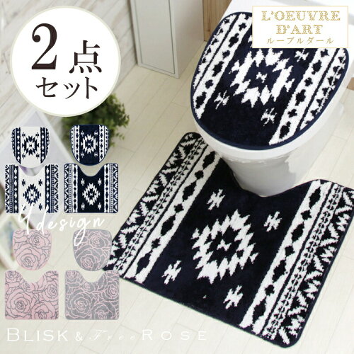 【クーポンで最大10%OFF】送料無料 トイレ2点セット 起毛素材 おしゃれ 北欧 ローズ エスニック ブリスク フリーローズ トイレマット 吸着タイプフタカバー 2点セットシック モダン 洗える