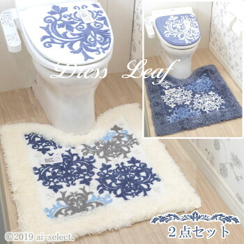 ジャパンブルー 日本製 人気 上質 特殊型(洗浄暖房便器用)『フタカバー(吸着タイプ) と トイレマット の 2点セット』 ドレスリーフ 選べるマルチ フタットシート かぶりフタ ウォシュレット 風水 おしゃれ セット2点