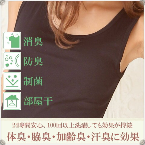 ギフト対応 消臭 綿100% タンクトップ の説明 脇汗、体臭、加齢臭、生乾き臭に100回洗濯しても効果が続く消臭インナー。